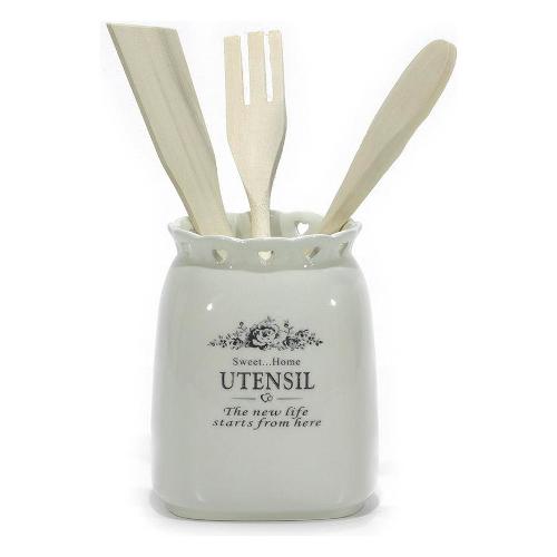 General Trade Porta mestoli con 3 utensili legno Bianco 527016