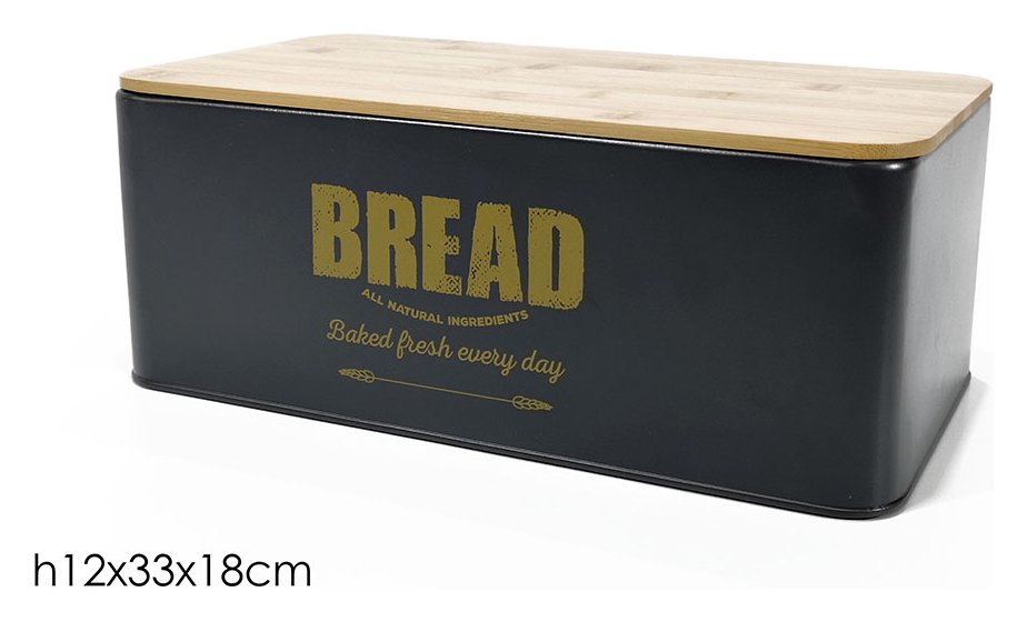 General Trade Porta pane (33x12x14cm) con coperchio BREAD Nero 533349