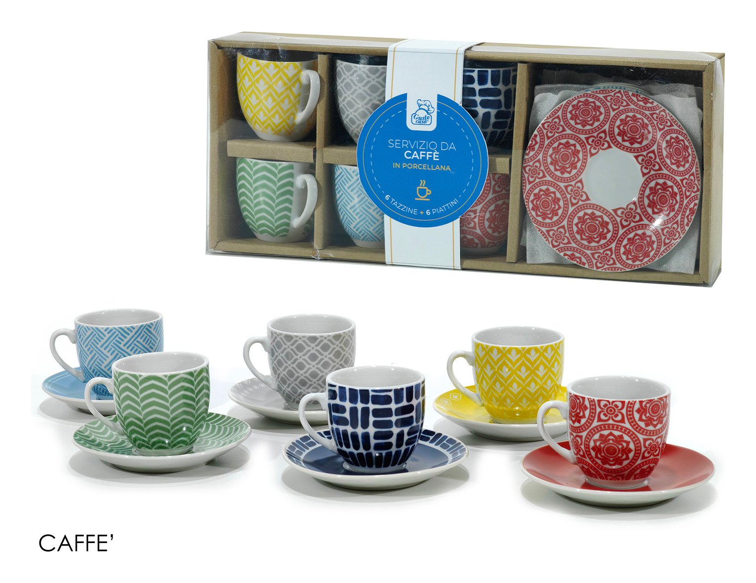 Set tazzine caffè con piatto 6 pz (90ml) GUSTO CASA Decori assortiti 554403