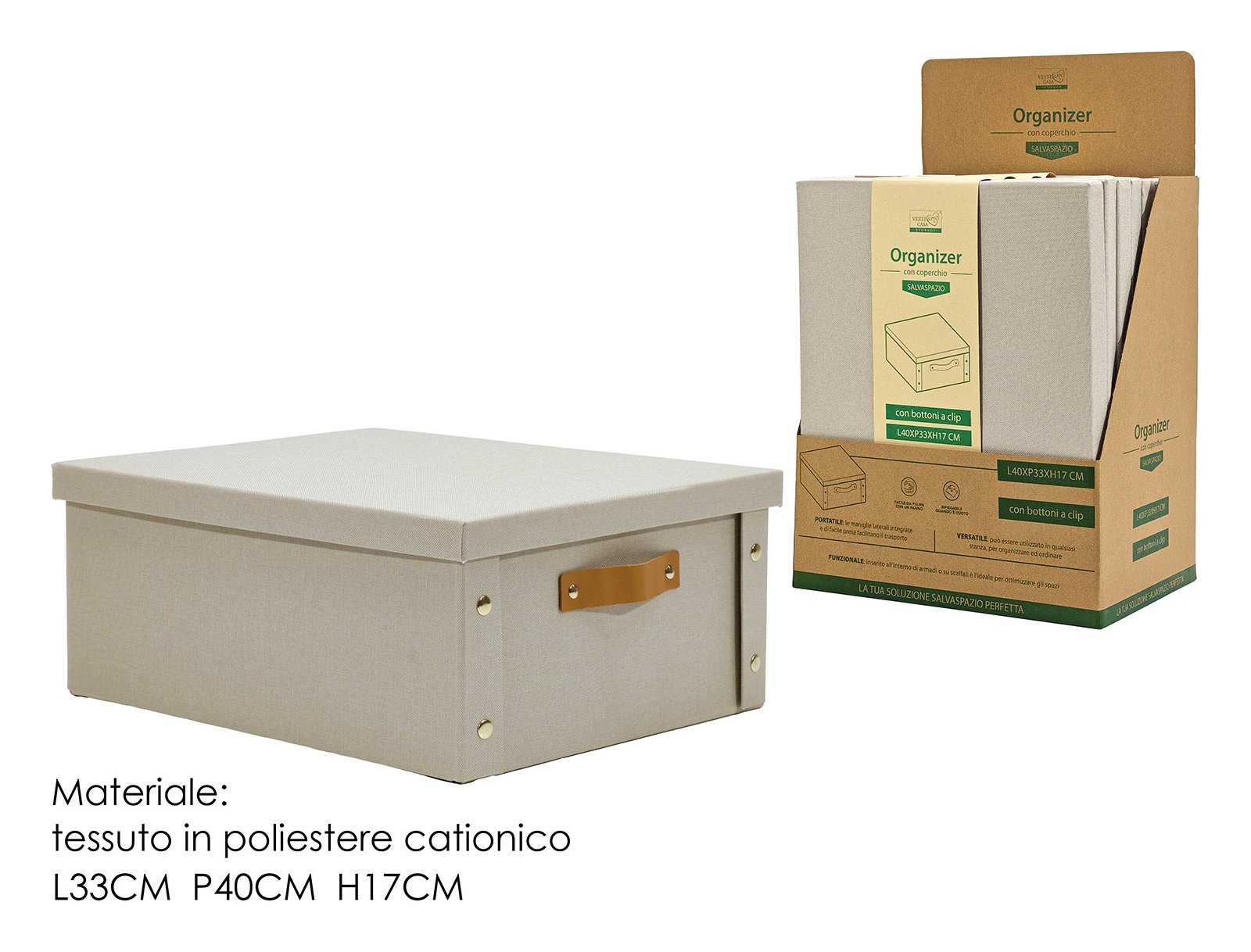 General Trade Scatola salvaspazio bottoni clip (33x40x17cm) Beige 605344