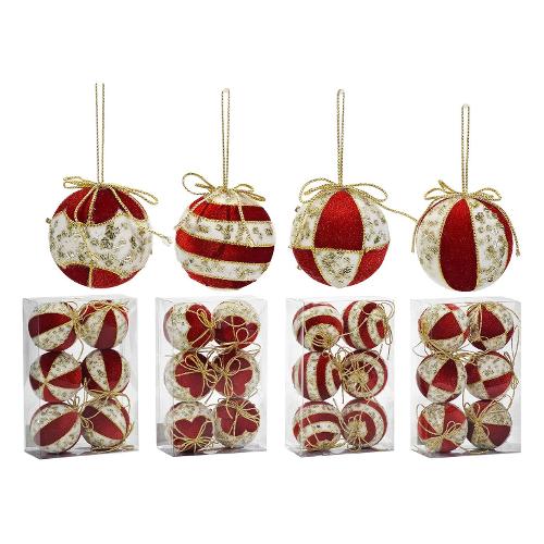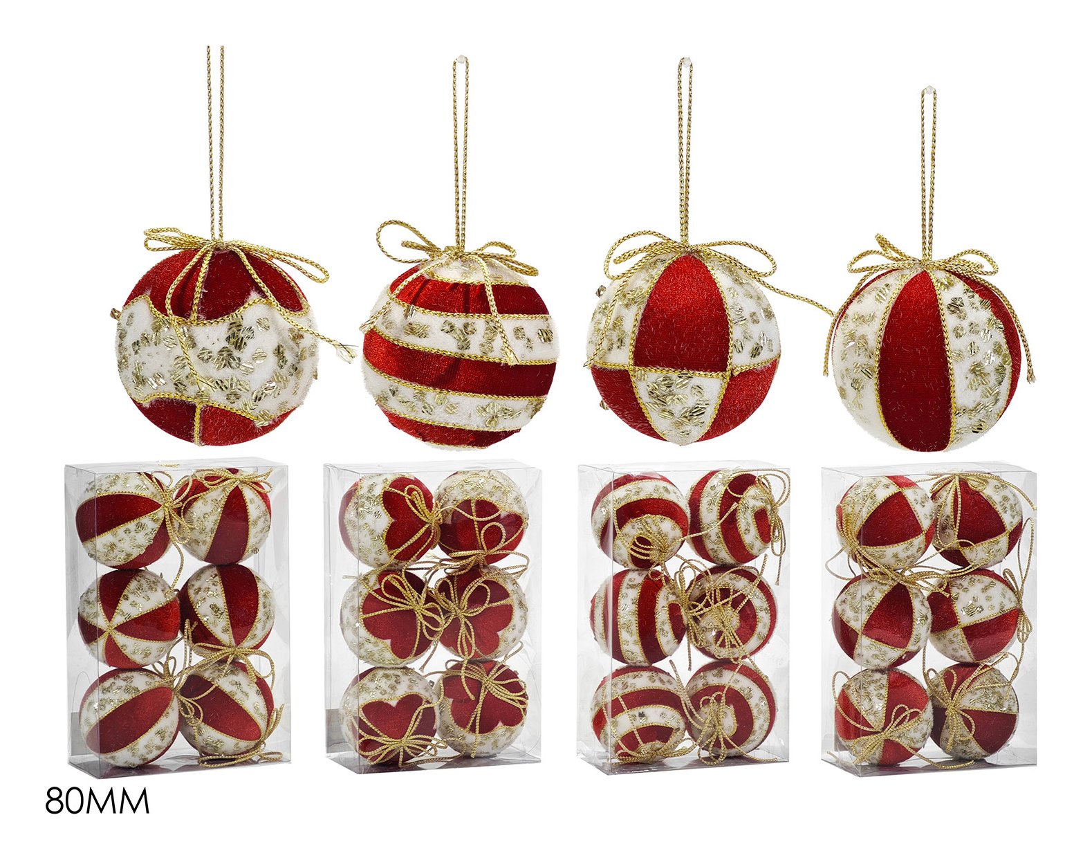 Set palline albero Natale (6pz-8cm) Tessuto Assortito Rosso 303260