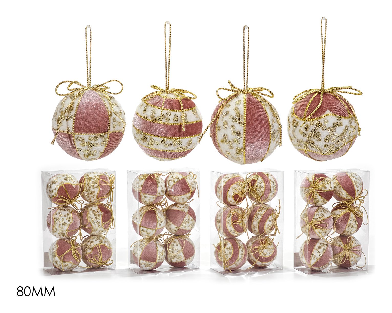 Set palline albero Natale (6pz-8cm) Tessuto Assortito Rosa 303266