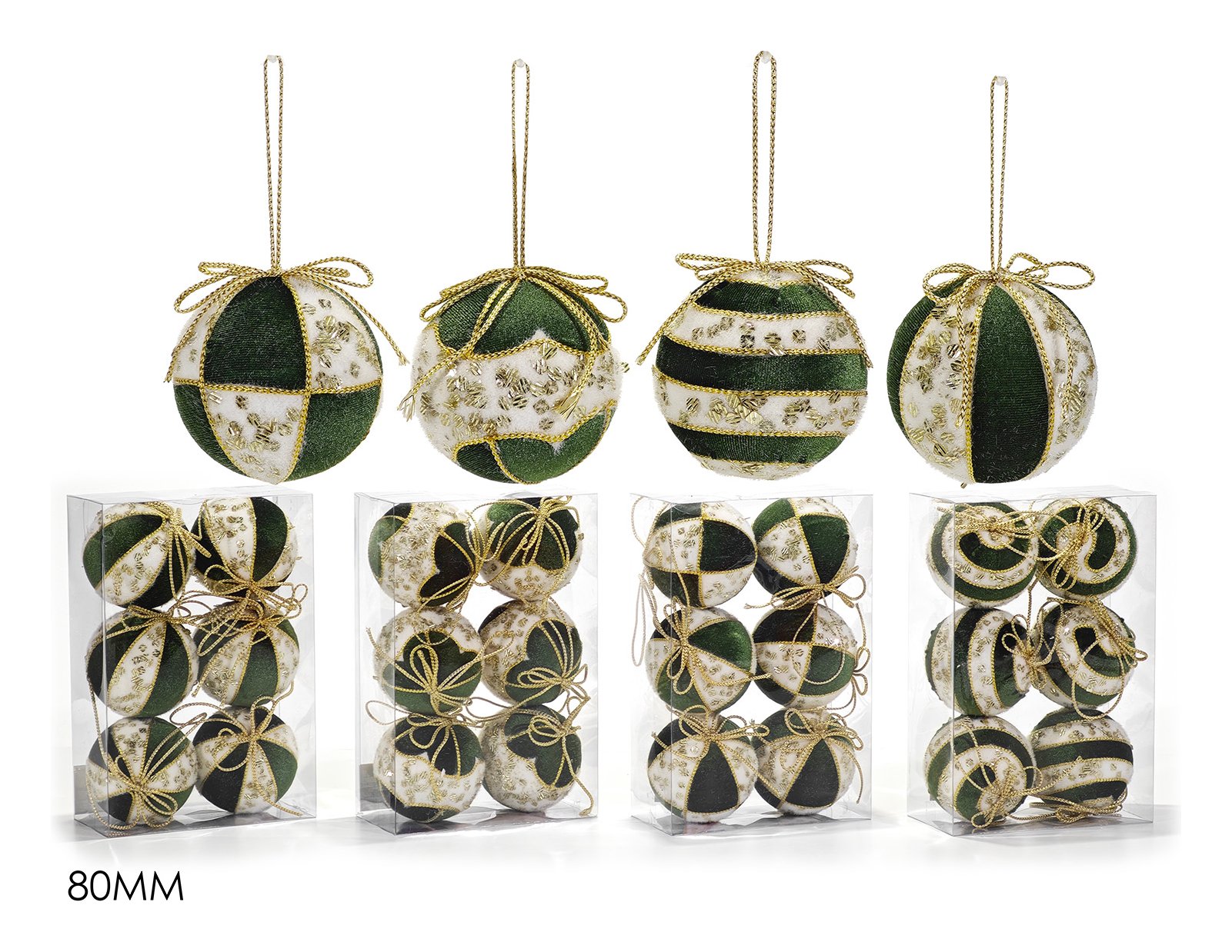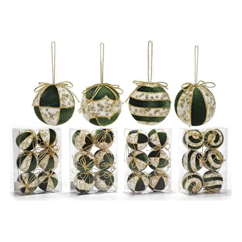 Set palline albero Natale (6pz-8cm) Tessuto Assortito Verde 303269