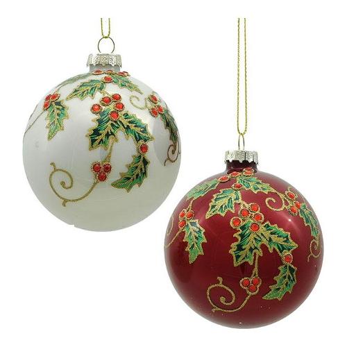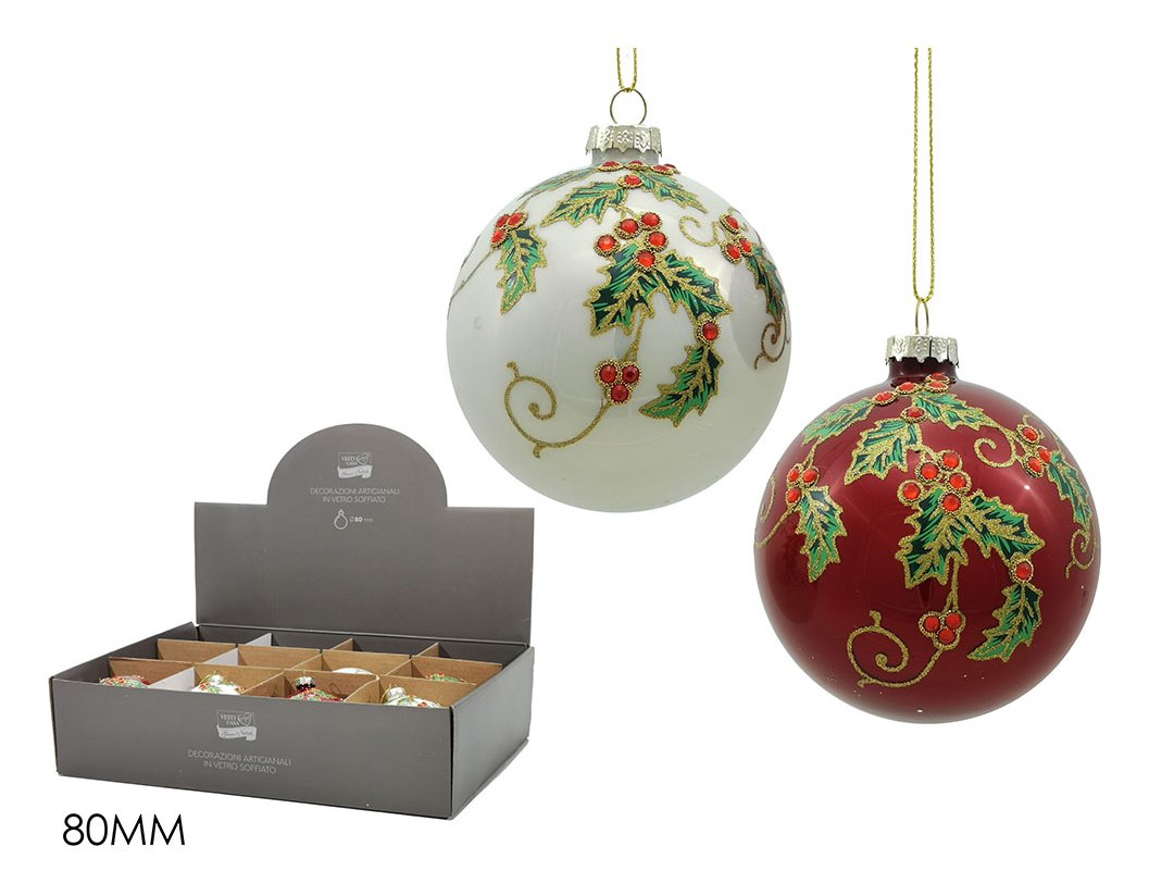 Pallina albero Natale (1pz-8cm) Vetro Assortito Bianco e Rosso 402986