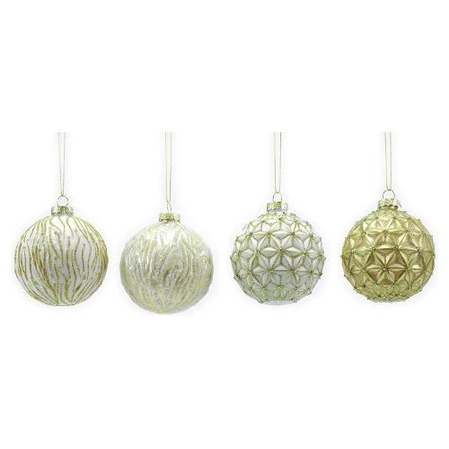 Pallina albero Natale (1pz-8cm) Vetro Assortito Bianco e Oro 404119