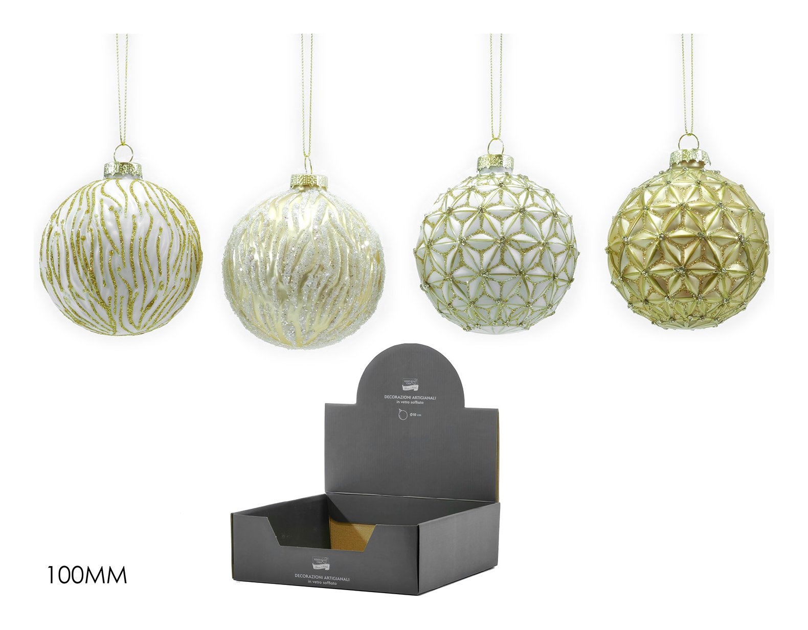 Pallina albero Natale (1pz-10cm) Vetro Assortito Bianco e Oro 404120