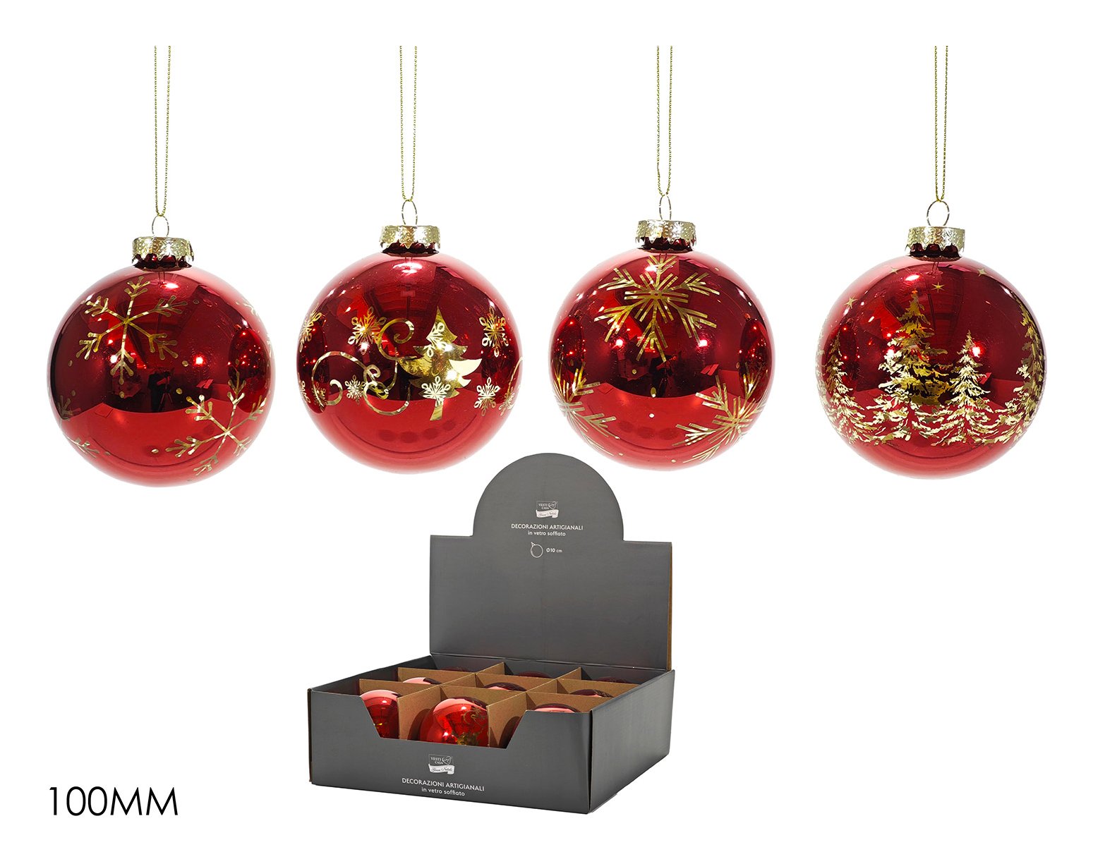 General Trade Pallina albero Natale (1pz-10cm) Vetro Assortito Rosso e Oro 480555