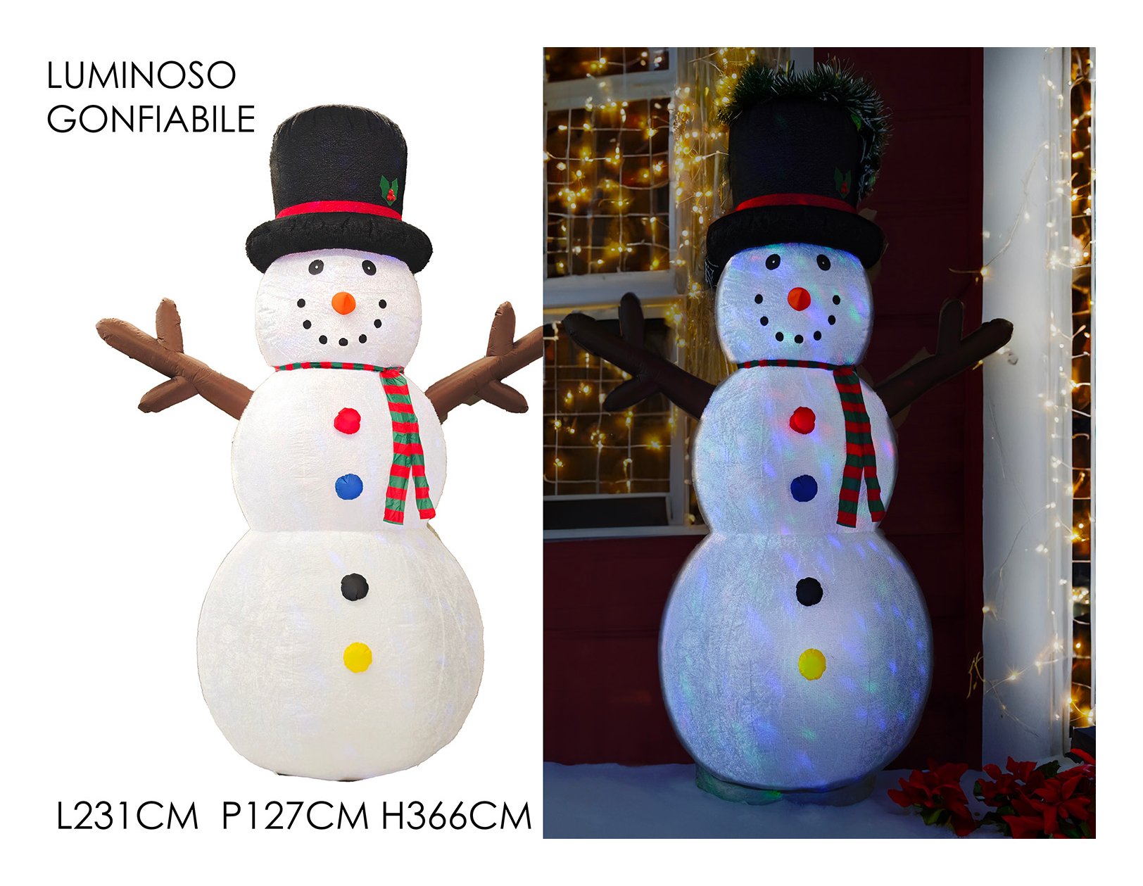 Pupazzo di neve gonfiabile, con luci (231x127x366cm) 427207
