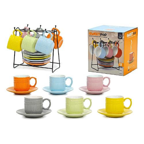 Set tazzine caffè stoneware con piatto 6 pz (70ml) Candy Pop stand metallo GUSTO CASA Colori assortiti 756602