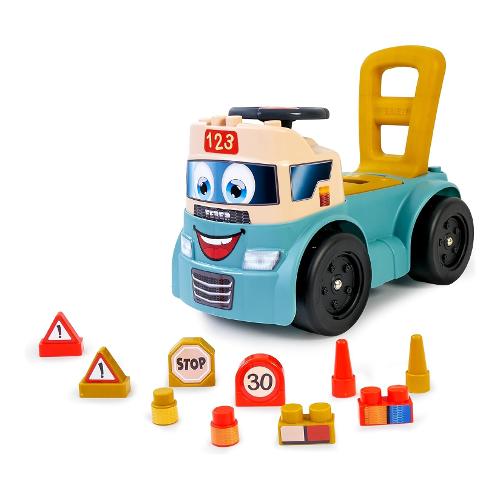 Cavalcabile 3 in 1: (1) spingi e vai, (2) cavalcabile e (3) set di 10 blocchi da costruzione. Il giocattolo perfetto per vedere i piccoli crescere e creare momenti divertenti insieme! Ha molti vantaggi: Lo spingi e vai aiuterà i piccoli a muovere i primi passi grazie allo schienale. Il cavalcabile li farà divertire al parco o a casa. I 10 blocchi da costruzione li aiuteranno a sviluppare la motricità fine, a migliorare lo sviluppo sensoriale, a imparare i colori, le forme, i segni e a incoraggiare il gioco immaginativo! Dopo aver giocato con i blocchi, possono essere riposti nel vano del sedile!