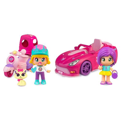 Nuova auto e moto assortite di pinypon con design moderno, decorati con elementi alla moda. Auto con ruote realistiche e un piccolo bagagliaio per riporre tutti gli accessori. Moto con un bauletto- trasportino per portare il cucciolo. Inclusi personaggi. Sarà possibile creare infinite combinazioni.