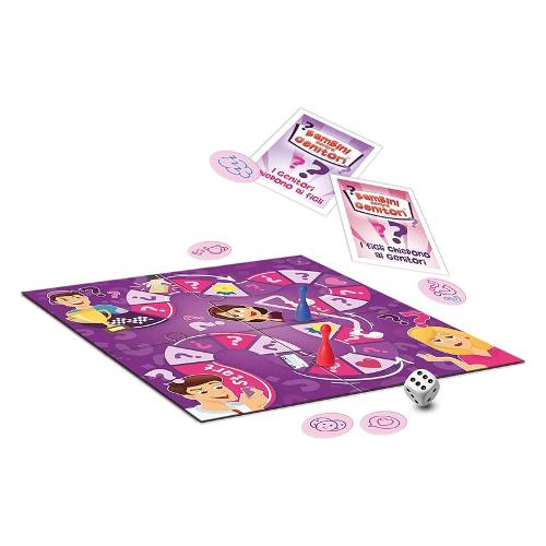 Contenuto: 54 carte, 216 domande, tavola, dadi e pedoni, fiches, regolamento.