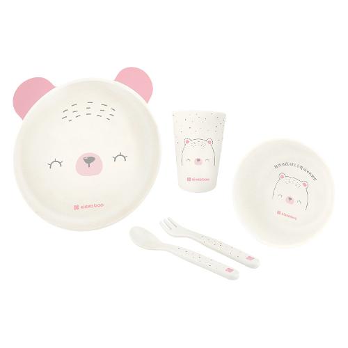 Il set comprende : piatto 17,4x2,2x18 cm ; tazza 7,2x7,2x10 cm 180ml; cucchiaio 2,8x0,6x13,5 cm ; forchetta 2,1x0,6x13,5 cm; ciotola 11,8x4x11,8 cm, 180 ml.
