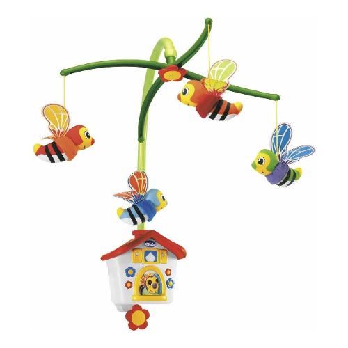 La giostrina casina delle api di chicco è il più classico dei giocattoli della buonanotte: un girotondo di apine colorate sulle note di una tenera ninna nanna aiuterà il tuo bimbo a rilassarsi e addormentarsi in un lampo. E' dotata di un supporto regolabile che le permette di essere fissata facilmente su qualsiasi lettino. La casetta centrale può essere staccata ed usata singolarmente come carillon.
