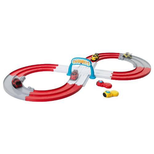 Dotata di 2 telecomandi senza fili a tecnologia infrarossi e due macchinine per sfidare amici o genitori.