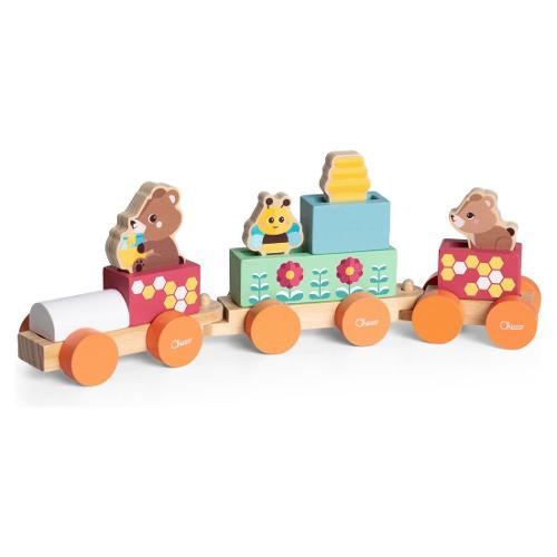 Treno in legno con 4 personaggi esclusivi inclusi: 2 orsetti, una simpatica ape e il suo alveare.