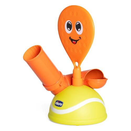 Attiva il giocattolo con l'interruttore, posiziona le 4 palline sullo scivolo laterale arancione e... preparati a giocare! Il giocattolo lancerà automaticamente le palline e il bambino potrà divertirsi a colpirle con le due racchette.