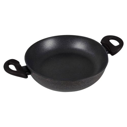 Tegame Ballarini Ravenna Diamond interamente realizzata in Italia con materiali di alta qualità. Resistente agli utensili in metallo, grazie al rivestimento antiaderente Keravis Diamond estremamente resistente, composto da tre strati rinforzati da particelle di diamante naturale 18 carati, il corpo in alluminio spessotato, rivestimento esterno resistente alle alte temperature ed arricchito da particelle di rame. Il fondo Radiant bimetallico realizzato in acciaio e alluminio, che la rende estremamente performante, il processo di applicazione e top secret fa parte di uno dei segreti aziendali di Ballarini, il fondo studiato per i piani a induzione adatto a qualsiasi piano cottura. Manici soft touch per una presa in sicurezza.