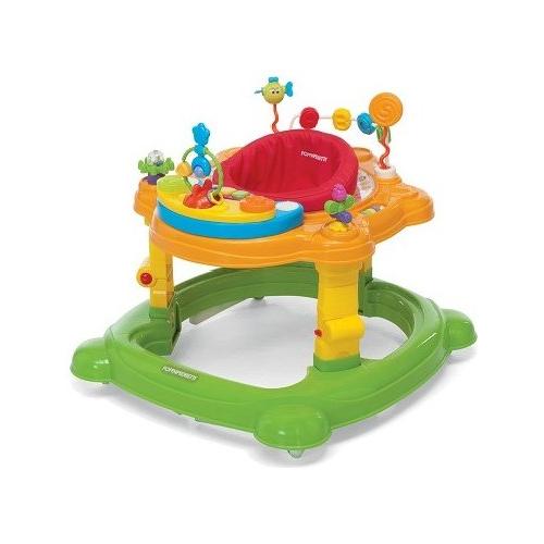 Completo di giochi e dispositivo musicale amovibile. comoda seduta ergonomica regolabile a tre altezze in base alla statura del bambino, è girevole a 360° con dispositivo di bloccaggio. dotata di quattro ruote di cui due piroettanti e due fisse gommate. Il gioco musicale funziona con 2 batterie aa non incluse