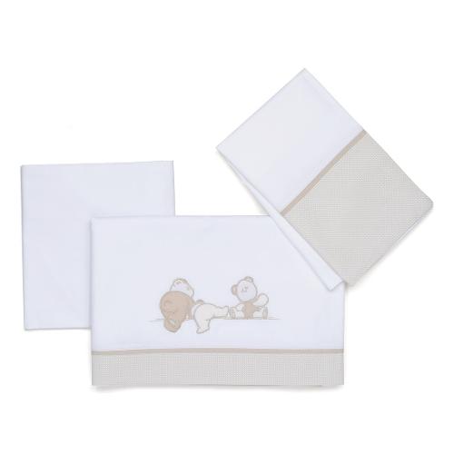 Set lenzuola lettino completo 3 pz GIOCOSO Bianco e Beige 9900279245