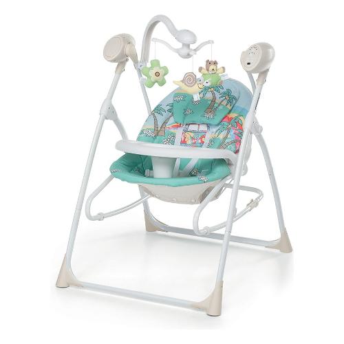 Si può utilizzare anche come sdraietta a dondolo. Dotata di telecomando per attivare a distanza il movimento della seduta e azionare le melodie musicali, con volume regolabile.