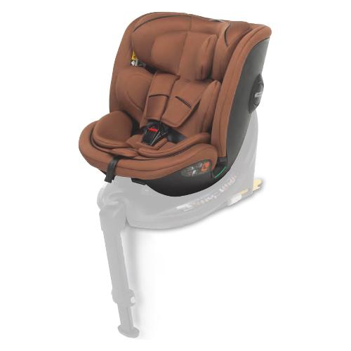 Seggiolino auto utilizzabile dalla nascita fino ai 12 anni (40-150 cm) da montare su base rotante disk i-size (non inclusa e acquistabile separatamente). Dotato di poggiatesta e cinture regolabili simultaneamente con unico movimento è dotato di tessuti e imbottiture extra comfort