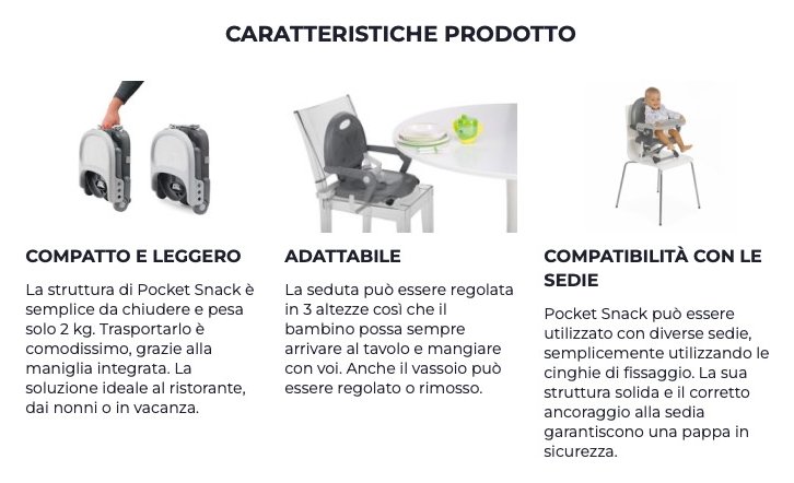Pocket snack è dotato di un'ampia seduta, per i pasti dei bambini dai 6 ai 36 mesi.