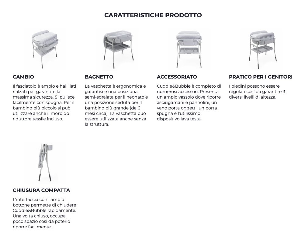 Il bagnetto fasciatoio completo e confortevole per gestire al meglio l'igiene del bambino dalla nascita fino a 12 mesi.