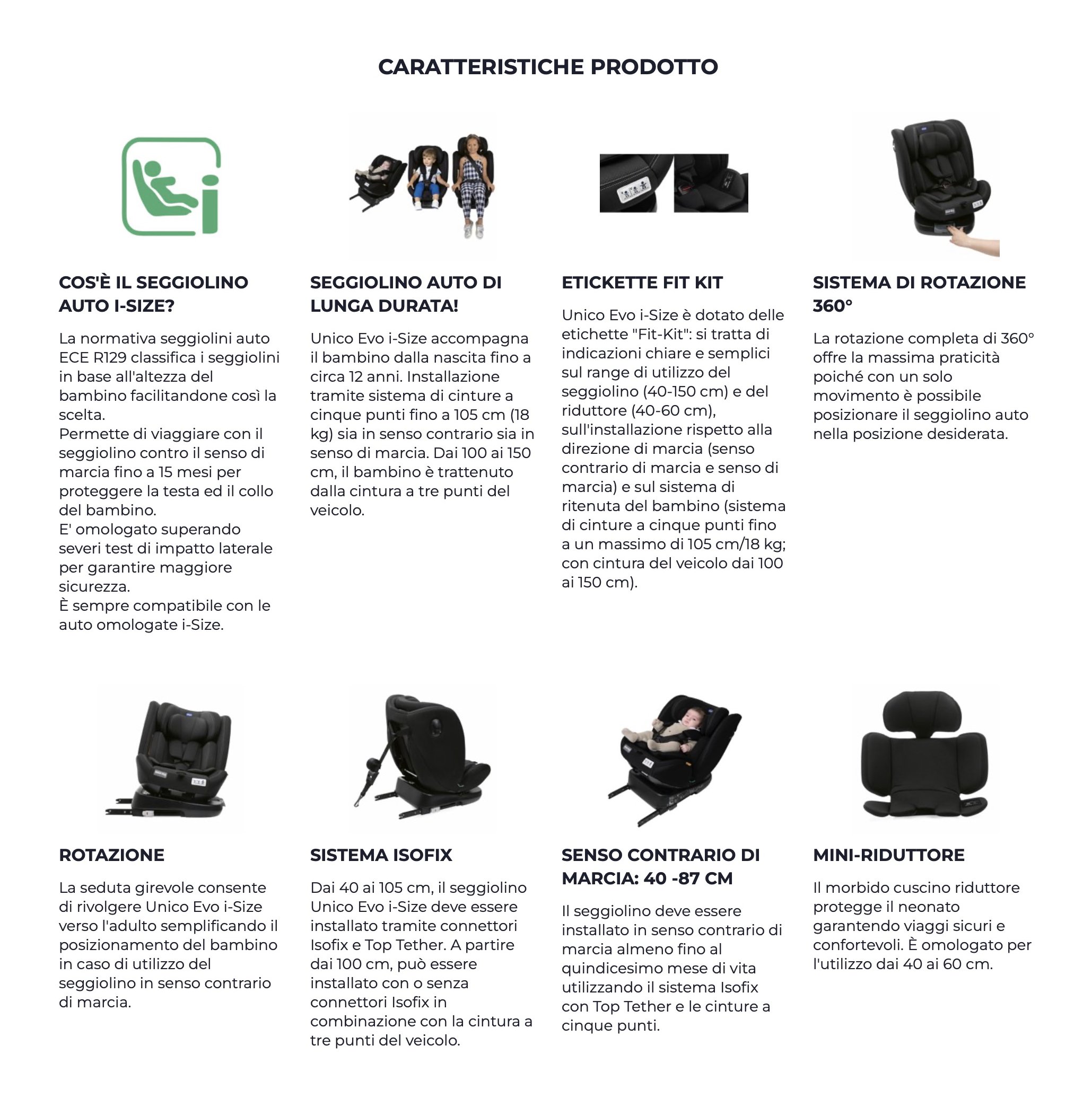Chicco Seggiolino auto I-Size (40-150cm) UNICO EVO Easy Recline System India ink 05087030390000