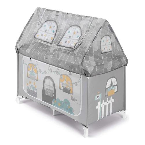Lettino casetta ideale per il gioco ed il relax del bambino. Doppia altezza, tettino con finestra apribile e 2 lati apribili. Fornito di 2 ruote con freno
