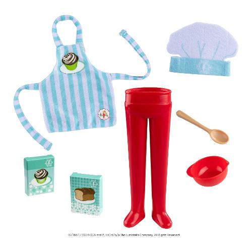 Ma prima, il dessert! Gli elfi diventano chef provetti con questo set, assemblato dalla migliore fornaia e pasticcera del Polo Nord, la signora Claus in persona! I pantaloni MagiFreez conferiscono super poteri, così gli chef degli Scout Elf possono stare in piedi mentre creano delizie culinarie. Include: Pantaloni MagiFreez® rossi Cappello e grembiule da chef Scatole di farina e zucchero Ciotola e cucchiaio