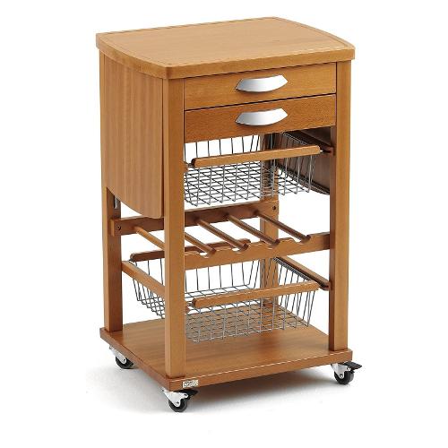 Tanti optional in poco spazio e grande piano di lavoro. Il modello Santiago è l'area attrezzata per eccellenza, potrai avere ovunque una piccola cucina dove cucinare ed avere le tue vivande sempre a portata di mano. Struttura in faggio massiccio, ampio tagliere centrale e tue taglieri apribili lateriale in listellare di faggio. Dotatodi cestelli in metallo verniciato a polveri, 2 ampi cassetti massiccio e ruote piroettanti in gomma anti traccia bloccanti. E’ un articolo davvero completo, il suo tagliere sorprende per l’estrema solidità, i cassetti ed i cestelli sono estremamente pratici così come il ripiano portabottiglie