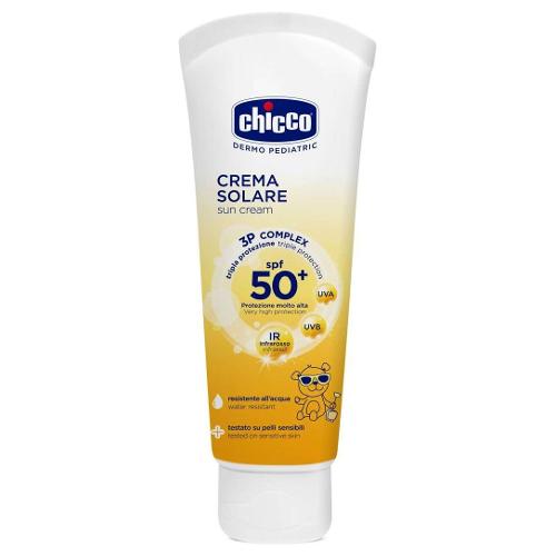 La crema solare 50+ Chicco, con protezione molto alta, è specificamente studiata per proteggere la pelle delicata dei bambini, nutrendola e proteggendola dai raggi solari UVA, UVB e dagli effetti dei raggi IR grazie al complesso fotoprotettivo avanzato 3P Complex. La sua formula non contiene parabeni, fenossietanolo, PEG e fragranze. Arricchita da ingredienti attivi come la vitamina E e l’estratto di Physalis ad azione antiossidante. La texture leggera la rende pratica e adatta in ogni occasione.