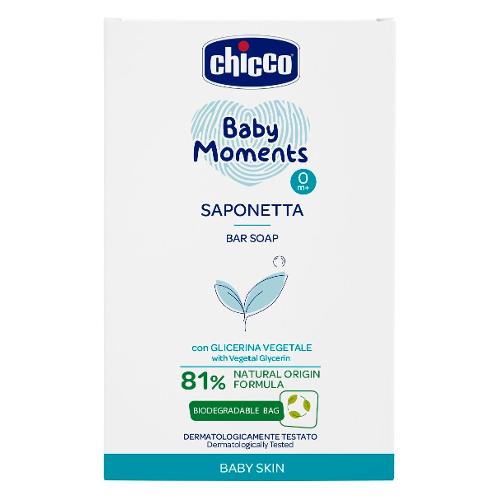 La saponetta per le mani Chicco Baby Moments è dermatologicamente testata sulle pelli sensibili.