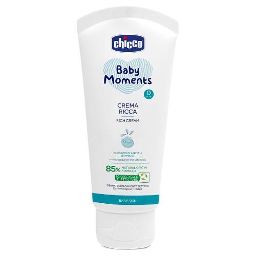 Arricchita con con burro di karité, vitamina e e un mix di oli ricchi di omega 3, la crema ricca baby moments chicco è particolarmente indicata per la cute secca.