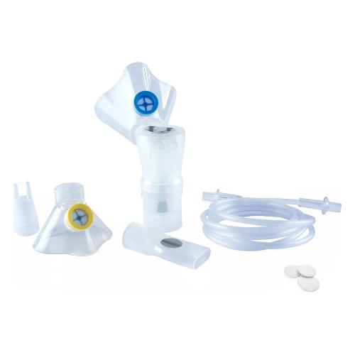 Un kit per l’aerosol Chicco completo di tutti gli strumenti necessari per seguire in maniera efficace la terapia. Le mascherine ergonomiche in morbido silicone garantiscono una maggiore aderenza al viso del bambino ed offrono il massimo comfort durante la terapia. L’ ampolla Breath Enhanced ad alta efficienza, con doppio sistema valvolare, garantisce una maggiore efficacia del trattamento e un minore spreco di farmaco.