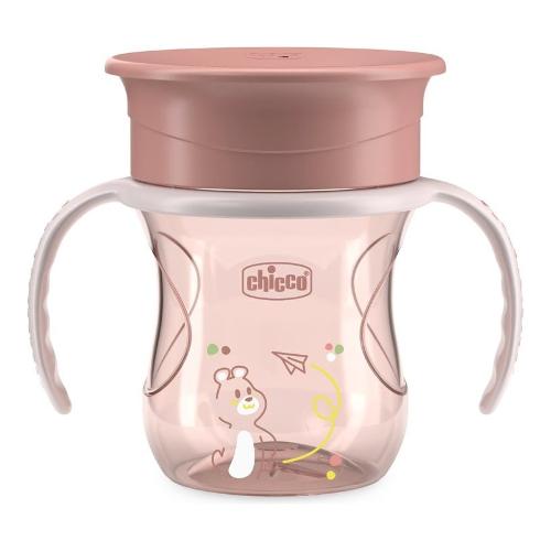Tazza ergonomica e dotata di manici rimovibili, è progettata per i bambini di 12 mesi che stanno imparando a coordinare respirazione e deglutizione; permette di bere proprio come dal bordo di un bicchiere, in autonomia e senza rovesciare l'acqua. la membra in silicone 360° si attiva con le labbra, rilasciando il liquido quando il labbro del bambino preme contro il bordo. La membrana è trasparente, così il bambino può vedere il liquido avvicinarsi. può essere facilmente rimossa per trasformare la tazza in un vero bicchiere, da utilizzare con o senza manici. Le tazze chicco sono state sviluppate con la collaborazione di esperti logopedisti e pediatri, per guidare in modo semplice e naturale nel passaggio dall'allattamento al bere in autonomia