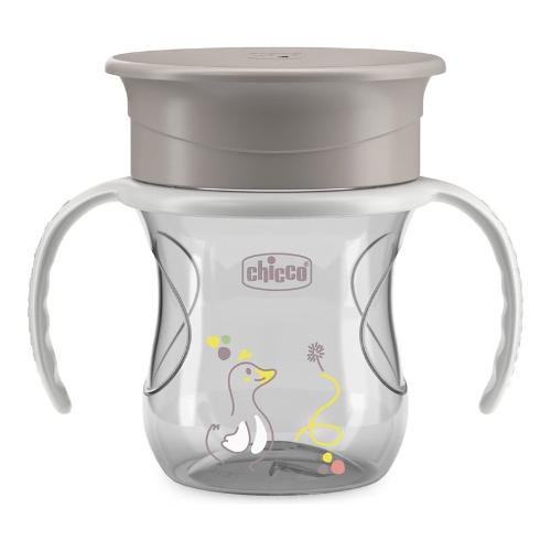 Tazza ergonomica e dotata di manici rimovibili, è progettata per i bambini di 12 mesi che stanno imparando a coordinare respirazione e deglutizione; permette di bere proprio come dal bordo di un bicchiere, in autonomia e senza rovesciare l'acqua. la membra in silicone 360° si attiva con le labbra, rilasciando il liquido quando il labbro del bambino preme contro il bordo. La membrana è trasparente, così il bambino può vedere il liquido avvicinarsi. può essere facilmente rimossa per trasformare la tazza in un vero bicchiere, da utilizzare con o senza manici. Le tazze chicco sono state sviluppate con la collaborazione di esperti logopedisti e pediatri, per guidare in modo semplice e naturale nel passaggio dall'allattamento al bere in autonomia