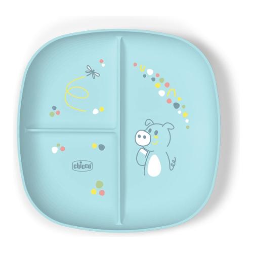 Chicco Piatto fondo bimbo plastica (24x21x2,6cm) porzionato 3P Azzurro 00016003250000