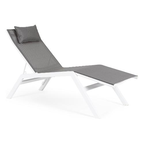 Struttura in alluminio verniciata a polvere (Poliestere). Rivestimento in Textilene 1x1. Schienale reclinabile in 3 posizioni. Cuscino poggiatesta con imbottitura per esterno fast dry foam, removibile e sfoderabile. Viteria in acciaio inossidabile