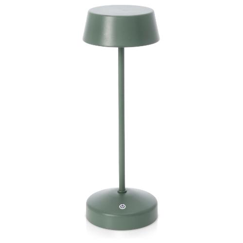 Metallo verniciato a polvere, lampada led, 6 led luce fredda e 6 led luce calda, luce dimmerabile, batteria ricaricabile con base di ricarica in plastica nera e cavo usb nero 0,8 m incluso. Tasto on/off touch. Per uso interno ed esterno