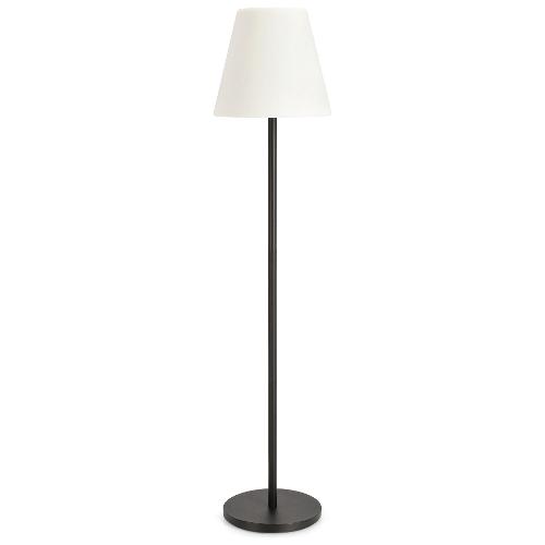 Pe, acciaio verniciato a polvere epossidica. Lampada led, 7 colori, altoparlante bluetooth. Batteria ricaricabile con cavo usb 2 m incluso. Anche a ricarica solare. Telecomando a distanza per regolazione cambio colore incluso. Per uso interno ed esterno, ip44