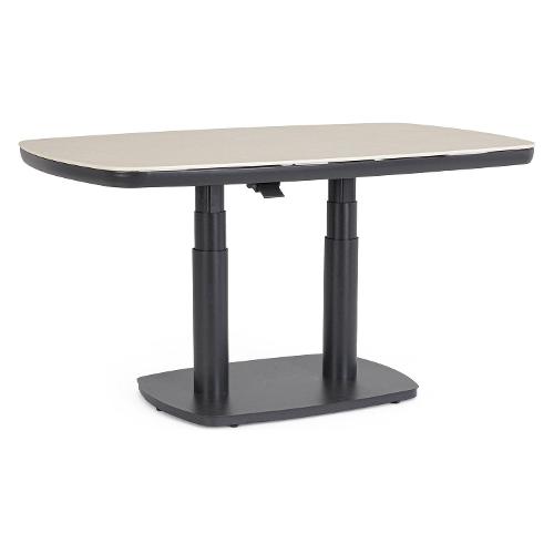 Struttura in alluminio verniciata a polvere (poliestere). Piano in pietra sinterizzata (pietra naturale lavorata ad elevate temperature)(spessore 11mm). Altezza regolabile in libera posizione tramite maniglia. Viteria in acciaio inossidabile. Piedini regolabili