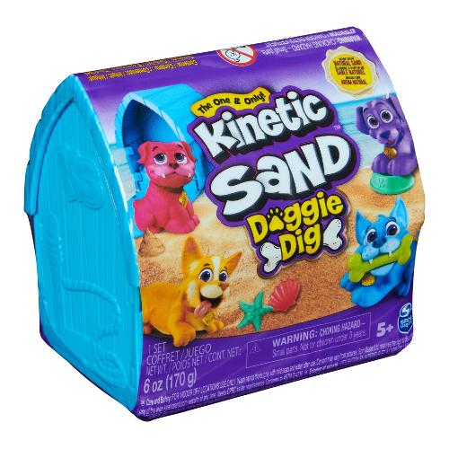 Scava per trovare tesori con il mini cagnolino di kinetic sand. Questo kit kinetic sand include 170 g di sabbia della spiaggia, 1 tra 4 cani adorabili che funzionano anche come attrezzo multiuso e due tesori. Il mini cagnolino stimola l'immaginazione e il divertimento consentendo ai bambini di usare le zampe del beagle, del carlino, dell'husky o del corgi per scavare nella sabbia alla ricerca di tesori nascosti a tema canino. Potrebbero trovare persino il tesoro dorato. Con quattro cani da collezionare (ciascuno in vendita separatamente), i bambini possono giocare con stampi nascosti, un coltello o una formina che offrono tantissime possibilità di gioco. Il contenitore riutilizzabile a forma di cuccia si piega per conservare tutto comodamente. L'inimitabile kinetic sand è realizzata con vera sabbia che aderisce a se stessa per una facile pulizia. Crea quante volte vuoi e lasciala scorrere tra le mani: è così appagante che non riuscirai a smettere. Kinetic sand è un'entusiasmante alternativa all'argilla da modellare ed è un'ottima aggiunta al tuo tavolo dedicato alle attività artistiche, alle vaschette sensoriali, alle attività per bambini e ai giocattoli montessori. Kinetic sand stimola le abilità fino-motorie e la creatività nei bambini dai 5 anni in su tramite il gioco tattile indipendente.