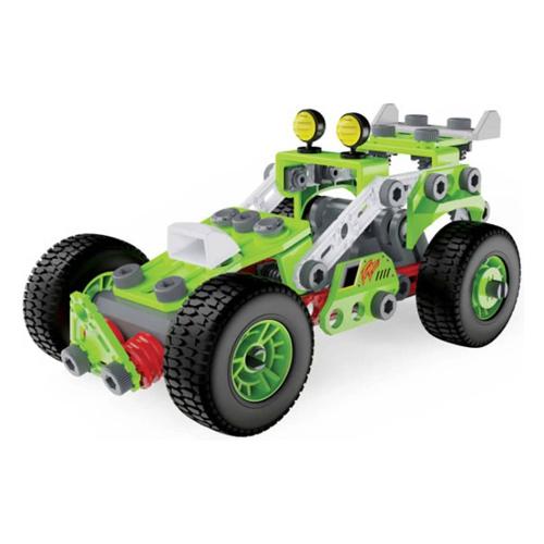 Questo set di buggy pull-back junior deluxe della meccano introduce il vostro piccolo nell'entusiasmante mondo dell'ingegneria! Il set ha tutto ciò di cui i bambini hanno bisogno per costruire un dune buggy, un atv o un fuoristrada, uno alla volta.