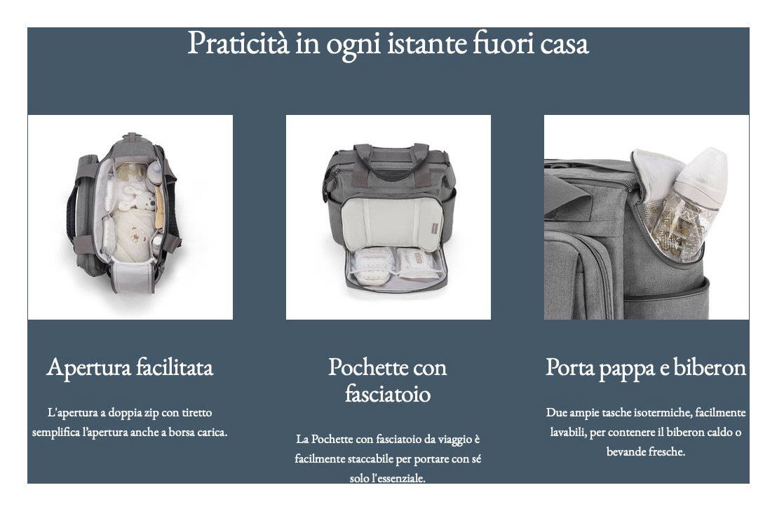 Dalla pappa al ricambio, quando sei fuori casa con il tuo bimbo hai un mondo da portare con te. Con la borsa aptica dual bag è tutto a portata di mano.