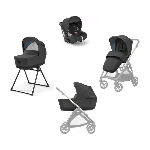 Completo di welcome pad, coprigambe per passeggino, cestino portaoggetti e portabibite, supporto stand-up per culla