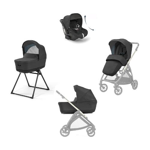 Completo di welcome pad, coprigambe per passeggino, cestino portaoggetti e portabibite, supporto stand-up per culla