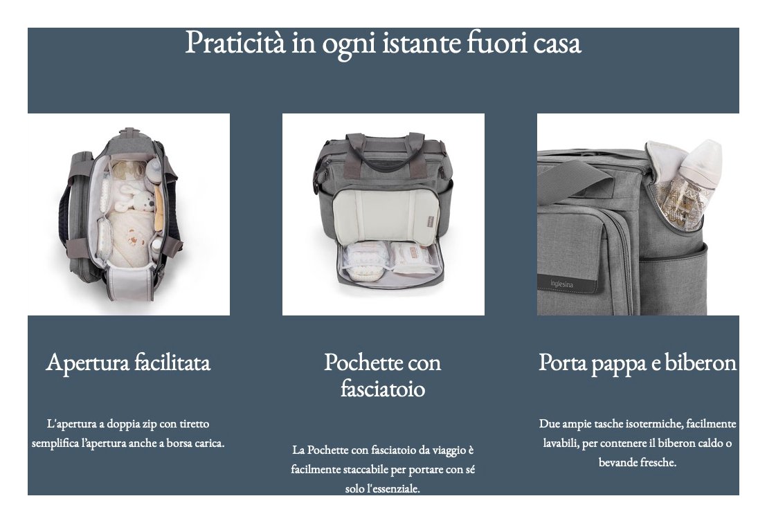 Dalla pappa al ricambio, quando sei fuori casa con il tuo bimbo hai un mondo da portare con te. Con la borsa electa dual bag è tutto a portata di mano. Spaziosa, resistente e multifunzione: grazie alle grandi tasche e ai numerosi divisori avrai sempre sempre tutto in ordine, facile da trovare e da riporre. Compatibile con tutte le varianti colore del system quattro electa. Electa dual bag racchiude molte funzioni con uno stile unico: pochette “clutch” staccabile, tasca esterna con chiusura magnetica, tracolla regolabile in lunghezza e doppia maniglia corta. Tutto è pensato per regalarti praticità e funzionalità sempre nel segno dello stile inglesina.