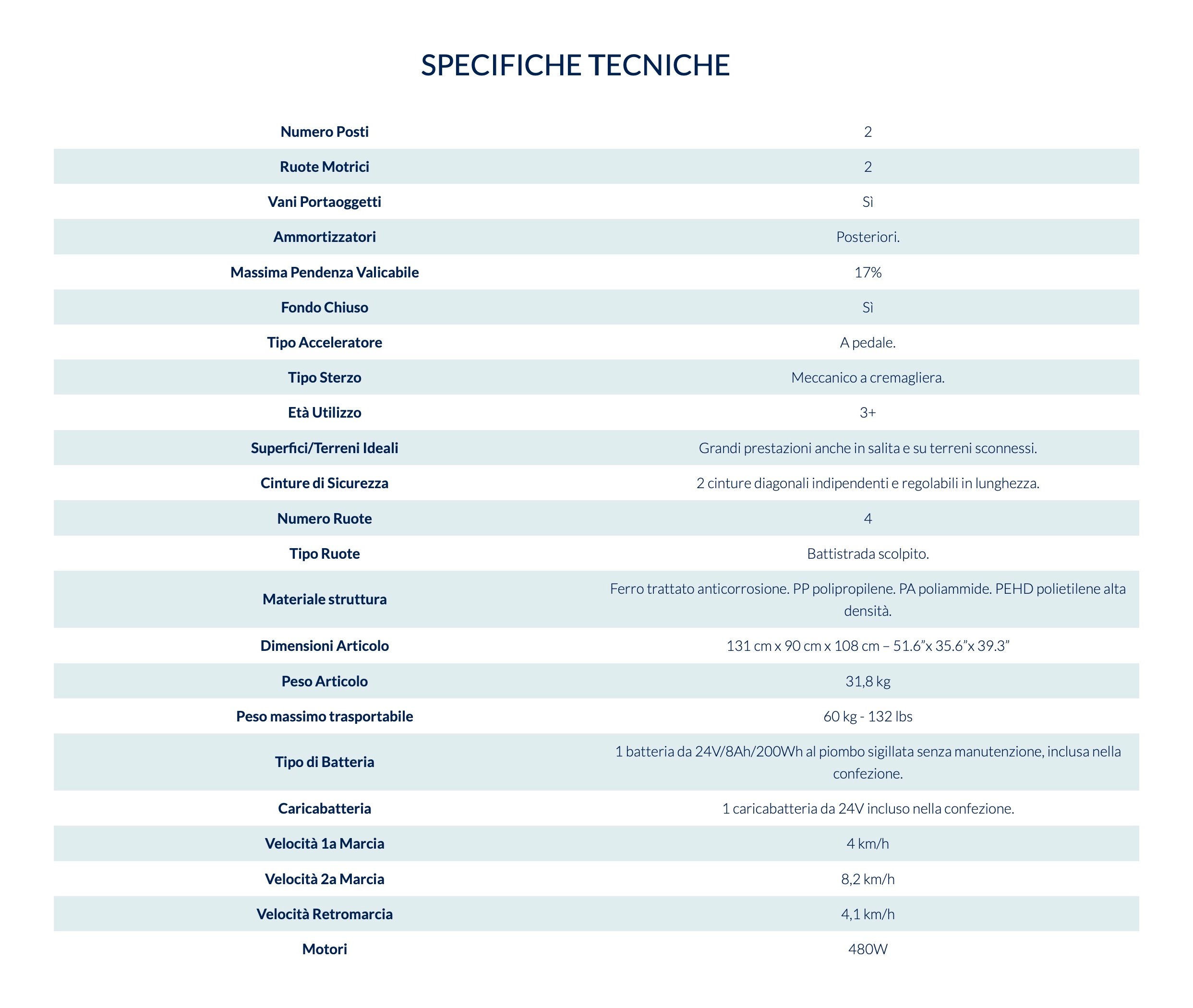 Tanto divertimento in più grazie ai due motori con una potenza pari a 480w e maggiore durata di gioco, già dai 3 anni. Un vero gioiello made in italy, gaucho xp funziona con una batteria ricaricabile da 24v - 8ah da ben 200wh.
